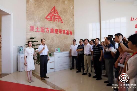 司爾特董事長金國清(左二)介紹測土配方施肥研究基地情況