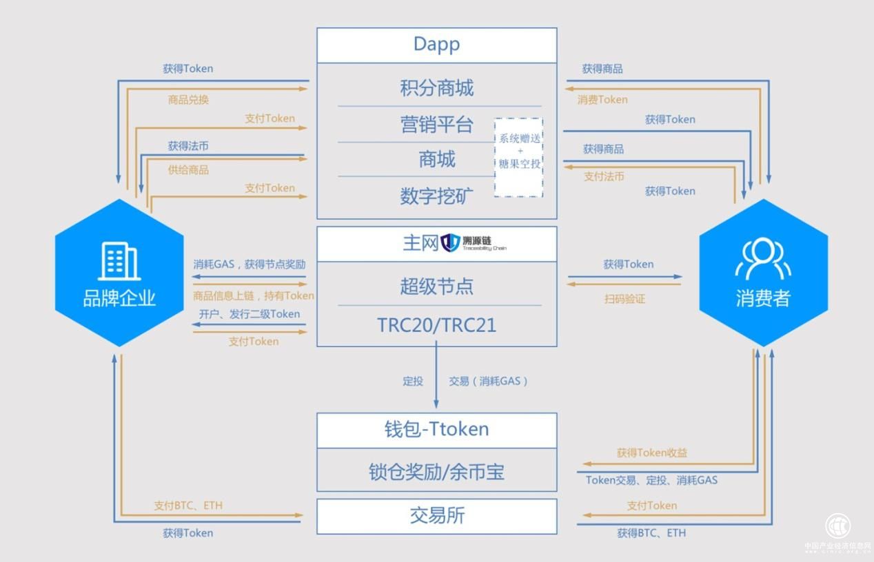 TAC溯源大生態(tài)采取的是一種token化的經(jīng)濟(jì)模型,未來的盈利點(diǎn)很多。比如,在這個(gè)模型里,品牌企業(yè)還可以借助TAC的智能合約TRC20、TRC721酌情發(fā)行自己的二級(jí)token,進(jìn)一步深化和消費(fèi)者的共生共享生態(tài)關(guān)系。