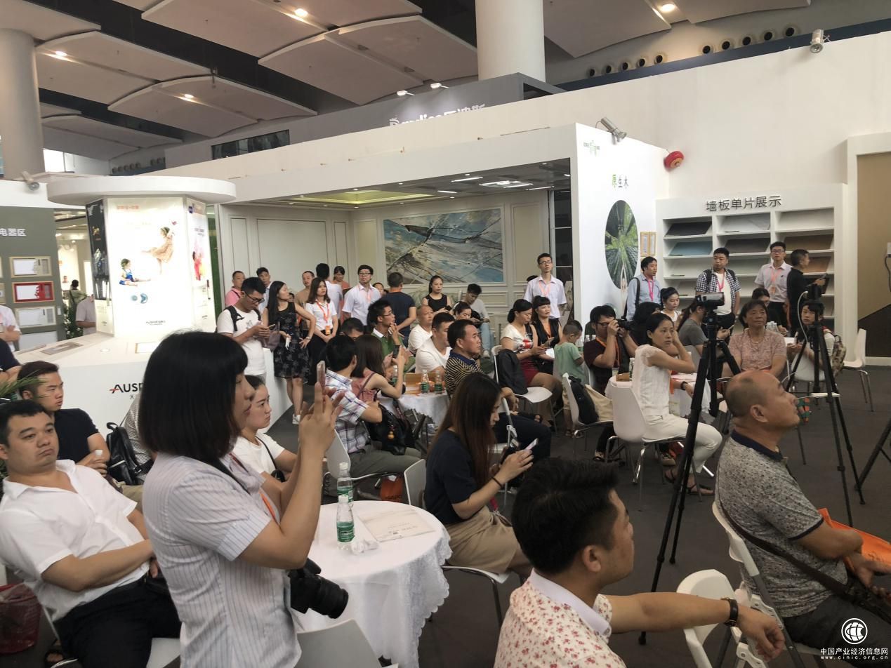 參展嘉賓對“光合木”墻板展現(xiàn)濃厚興趣