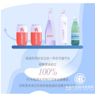 不難發(fā)現(xiàn),如今消費者對水的消費逐漸向瓶裝水升級,人們消費瓶裝水的意識也越來越強。白皮書指出,我國瓶裝水行業(yè)年產(chǎn)量已位居世界第一,但在人均消費量上至少還有3倍增加空間,過去一年在天貓平臺銷售增速超過100%,水品類消費呈現(xiàn)高端化、健康化和娛樂化3大趨勢,瓶裝水市場正迎來全面爆發(fā)。