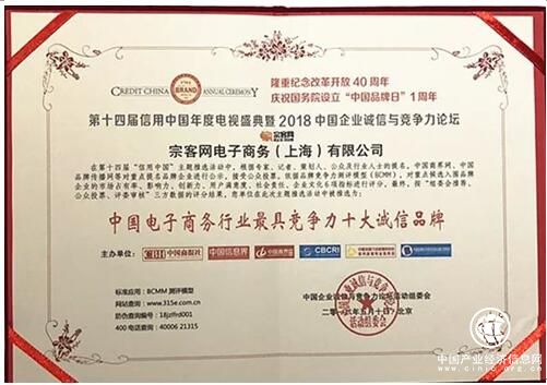 此次論壇,宗客網憑借近年來誠信創(chuàng)新的經營發(fā)展理念與日漸提升的企業(yè)影響力受邀出席。并在本次高峰論壇成果發(fā)布盛典上,榮獲“中國電子商務行業(yè)最具競爭力十大誠信品牌”!