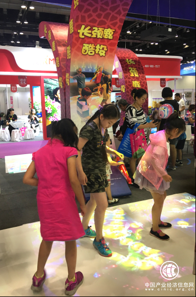 除“長頸鹿酷投”外,國術(shù)科技還在本次展會(huì)上展出了桌面游戲、體感互動(dòng)Avatar等多種互動(dòng)形式產(chǎn)品,為兒童提供了200多種豐富的游戲體驗(yàn),讓他們流連忘返。