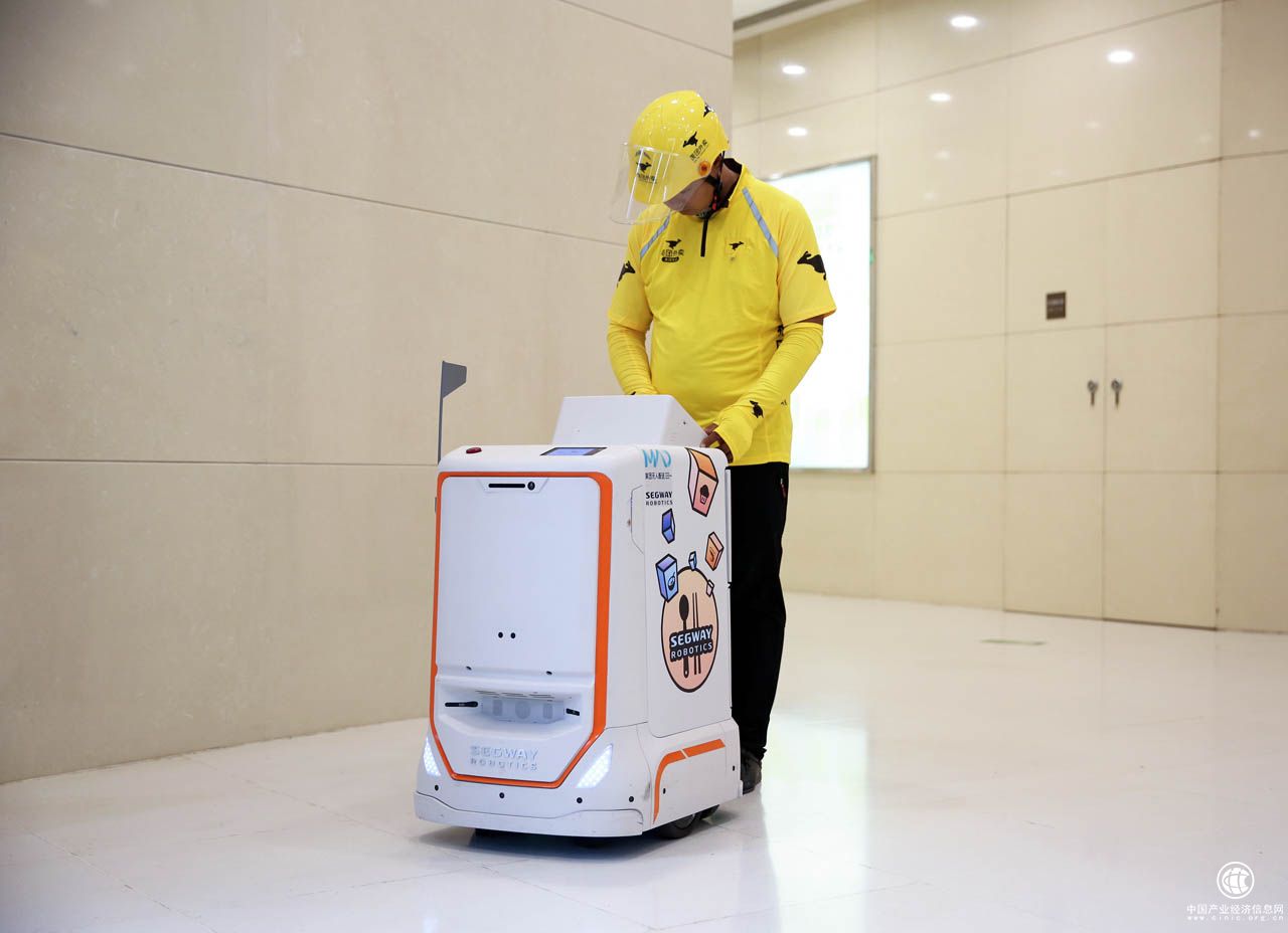 美團(tuán)外賣(mài)小哥從Segway配送機(jī)器人中取餐