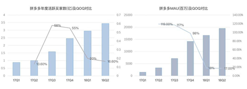 拼多多的發(fā)展尚屬早期,以及微信用戶紅利期,截止2018Q2拼多多年度買家數達3.44億,從18Q1大幅增長的獲客成本看,微信的流量紅利似乎到達瓶頸,那么在獲取流量和轉化流量上都做到了極致的拼多多如何做留存和變現?
