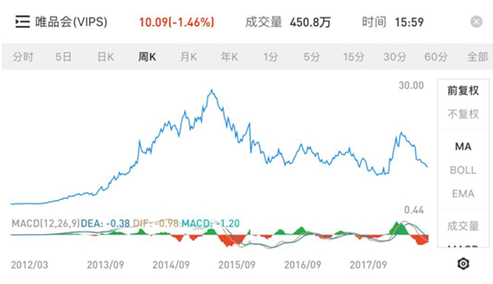 限時秒殺,投資者的第一反應是曾經的電商“妖股”唯品會。2012年唯品會流血上市,上市之際也僅滿3年,跟拼多多一樣,一年后最高漲幅60倍,被稱為第一妖股。而隨著流量的吃緊和尾貨特賣模式的瓶頸,活躍用戶不再增長,神話已滅,也不過三年。拼多多顯然也不想讓人聯想到唯品會。