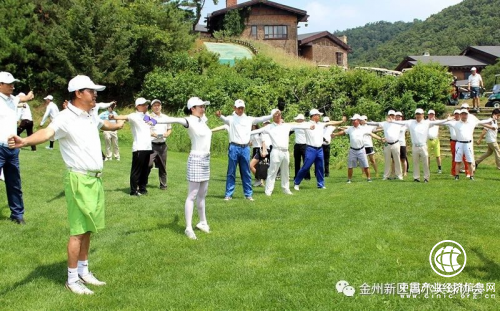 隨后,全體參賽選手來到紅旗谷高爾夫出發(fā)臺前的練習(xí)果嶺旁,在高爾夫?qū)B毥叹殕T的帶領(lǐng)下做高爾夫下場前的預(yù)備運(yùn)動(dòng),活動(dòng)臂、腕、腰、膝、腿等各個(gè)部位,為下場打球做好熱身準(zhǔn)備。