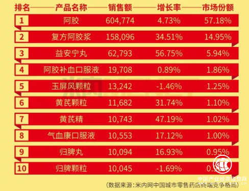 根據(jù)米內(nèi)網(wǎng)最新數(shù)據(jù)顯示,2017年中國城市零售藥店終端中成藥補(bǔ)氣補(bǔ)血類用藥的市場規(guī)模上漲至106億元,增長率為12.39%,過億產(chǎn)品有10個。