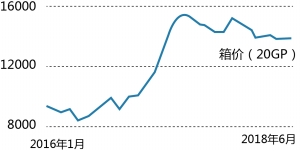 上證報(bào)記者拿到的一份銷(xiāo)售數(shù)據(jù)顯示,伴隨著市場(chǎng)轉(zhuǎn)旺,中集20英尺的標(biāo)準(zhǔn)集裝箱單價(jià)2016年四季度開(kāi)始上漲,11月份突破1萬(wàn)元人民幣,2017年5月攀升至15350元人民幣的階段性高點(diǎn)。但之后卻開(kāi)始震蕩向下,進(jìn)入2018年后,價(jià)格繼續(xù)下滑,二季度該尺寸箱價(jià)連續(xù)3個(gè)月低于14000元人民幣。