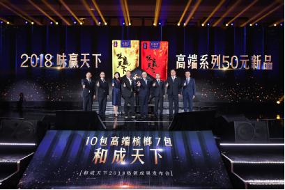 10月10日,口味王集團(tuán)“和成天下2018熱銷成果發(fā)布會(huì)”在湖南長沙舉行,宣布了“10包高端檳榔,7包和成天下”的成績,同時(shí)發(fā)布了一款“2018味贏天下”高端系列新品。