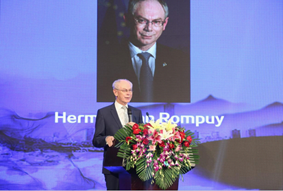 本次論壇特邀嘉賓,比利時(shí)前首相、歐洲理事會(huì)第一任主席赫爾曼·范龍佩先生分別從中歐關(guān)系的過去和未來做了分析和展望。他強(qiáng)調(diào),中歐的合作伙伴關(guān)系是成熟的伙伴關(guān)系,雙方的價(jià)值觀和利益方面越來越趨同。赫爾曼·范龍佩認(rèn)為,相互依賴是繁榮的最佳途徑。