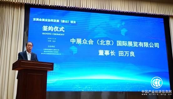 2018年12月18日上午,中國國際展覽中心集團公司與唐山市曹妃甸區(qū)人民政府、唐山市文化旅游投資集團有限公司在北京聯(lián)合主辦“京冀會展業(yè)協(xié)同發(fā)展(唐山)項目”簽約儀式。國內(nèi)知名組展單位、入駐產(chǎn)業(yè)園區(qū)企業(yè)和會展相關(guān)行業(yè)代表近100人參加了本次活動。