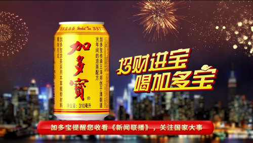 2019年1月1日,加多寶隆重登陸央視黃金時(shí)段——《新聞聯(lián)播》提示收看。該時(shí)段被譽(yù)為《新聞聯(lián)播》的“頭條工程”,引領(lǐng)著每日《新聞聯(lián)播》的播出,為品牌與新聞搭建了堅(jiān)實(shí)橋梁,有效提升了品牌的影響力和美譽(yù)度。從1月1日起,加多寶提醒您收看《新聞聯(lián)播》,關(guān)注國家大事!