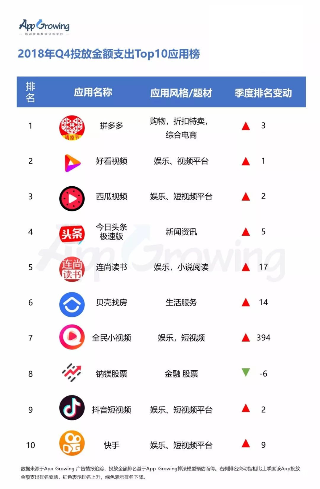 1) 2018年 Q4 投放金額支出Top10應(yīng)用榜