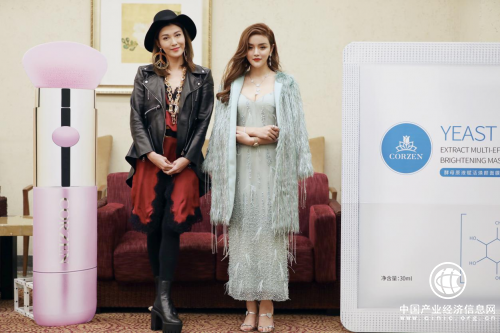 ▲香港女星李彩樺(左)與蔻辰創(chuàng)始人徐楠楠(右)合影