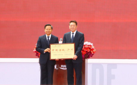 中國(guó)輕工業(yè)聯(lián)合會(huì)會(huì)長(zhǎng)張崇和為瀘州授牌,瀘州市市長(zhǎng)楊林興接牌