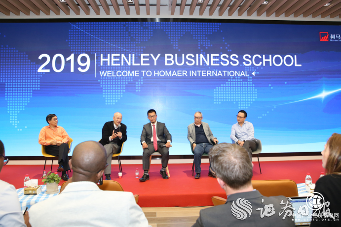4月10日上午,國(guó)際知名學(xué)院雷丁大學(xué)亨利商學(xué)院(Henley Business School)一行參訪荷馬國(guó)際客戶服務(wù)總部,該商學(xué)院客座教授關(guān)明生(原阿里巴巴COO)、Venturous創(chuàng)始人譚秉忠、荷馬國(guó)際創(chuàng)始人兼CEO葉程坤、前香港聯(lián)合交易所行政總裁徐耀華、新昌集團(tuán)獨(dú)立董事彭沛然等人接待了來(lái)自20多個(gè)國(guó)家的70余位學(xué)員,并就智能科技的發(fā)展趨勢(shì)、金融科技的實(shí)踐經(jīng)驗(yàn)、智慧城市的現(xiàn)狀和趨勢(shì)進(jìn)行了深入交流。