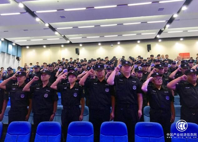 宣誓活動在《打造堅實力量,維護校園安全—市南區(qū)安保工作匯報片》中拉開了序幕,視頻中全面記錄展現(xiàn)了市南區(qū)警教聯(lián)動打造“保安護門、教師護生、民警巡查、交警巡路”的兩護兩巡校園四維安全防護體系以及全區(qū)校園保安冬練三九、先練三伏、礪練精兵、誓保安寧的工作歷程。隨后,市南區(qū)五家校園保安公司負(fù)責(zé)同志分別上臺進行了鏗鏘有力的表態(tài)發(fā)言,代表全體保安隊員立目標(biāo)、表決心。“我宣誓:作為一名光榮的校園保安,我將不忘初心、牢記使命,嚴(yán)守紀(jì)律、不負(fù)重托。全力維護校園安全,誓保師生平安,以勇敢無畏的校園保安精神,為建設(shè)市南平安校園貢獻最大力量。”在全體保安緊握右拳莊嚴(yán)宣誓,誓保校園師生平安的心聲響徹會場。