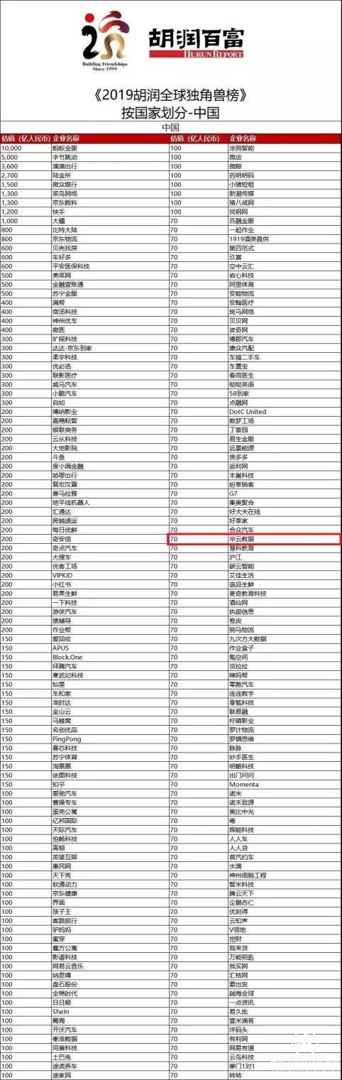 10月21日,財經(jīng)研究機構(gòu)胡潤研究院發(fā)布首份《2019胡潤全球獨角獸榜》,全球共有494家獨角獸企業(yè)上榜,其中,中國共有206家,數(shù)量排名全球第一。華云數(shù)據(jù)作為中國本土云計算服務(wù)商,憑借深厚的技術(shù)實力和強勁的發(fā)展態(tài)勢成功進(jìn)入榜單,是榜單中為數(shù)不多的中國云計算企業(yè)之一。