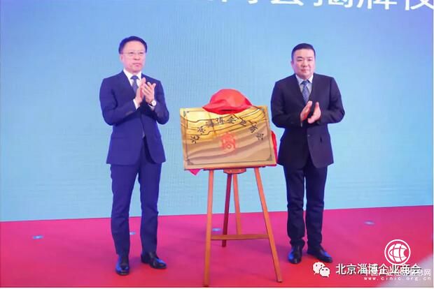 淄博市委書記江敦濤(左)和北京淄博企業(yè)商會會長欒貽明共同為商會揭牌