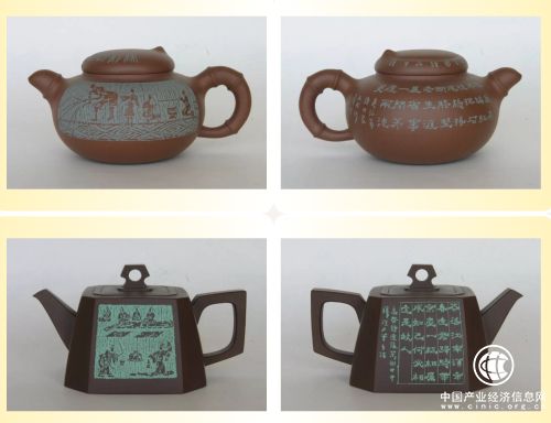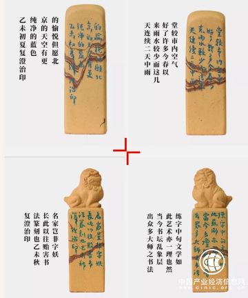 他在宜興紫砂壺上的創(chuàng)作,拓寬和豐富了宜興刻陶藝術(shù),因而他創(chuàng)作的紫砂壺被稱為“復(fù)澄壺”;利用宜興紫砂泥作為印材,并大量創(chuàng)作了紫砂印章。