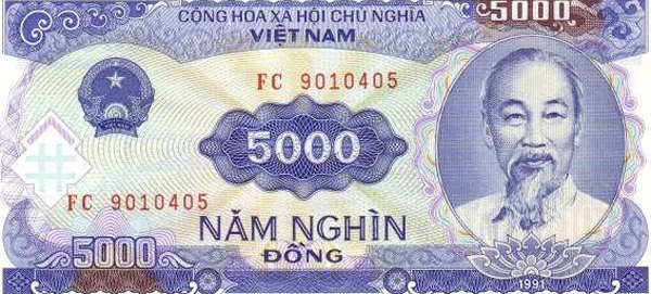 越南盾上方國語字還原漢字“共和社會主義越南”