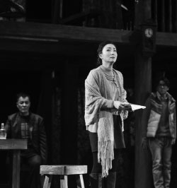 仿佛來(lái)不及懷疑,就“忘”了:戲劇是行動(dòng)(動(dòng)作)的藝術(shù),不是朗誦的藝術(shù)。戲劇藝術(shù)可以吸收說(shuō)書(shū)人藝術(shù)的某些手段,卻不能被其取代。因?yàn)?,觀眾來(lái)看的是“戲”。