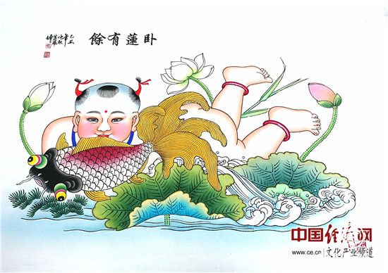 年畫“臥蓮有余”寓意連年有余、生活美滿 經(jīng)濟(jì)日報(bào)-中國經(jīng)濟(jì)網(wǎng)記者魏金金/攝
