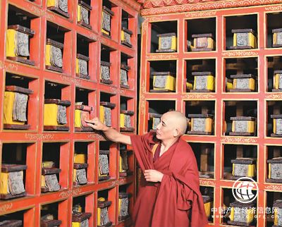 圖為僧人在整理文獻(xiàn)。