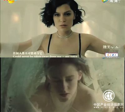 湖南衛(wèi)視《歌手》Jessie J的宣傳片(上)和香奈兒香水廣告(下)截屏對(duì)比。