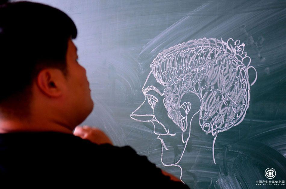 自閉癥孩子最大的特點(diǎn)就是對外界事物不感興趣,不大察覺別人的存在,很少主動與人交流,但羅楊老師并沒有放棄教張?jiān)椾撉?。圖為張?jiān)お?dú)自在黑板上畫畫。