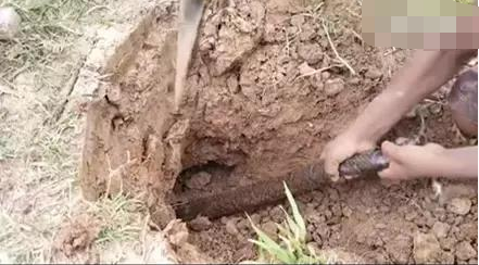 找到蛇洞后,姐姐用工具把土撬開,弟弟則將蛇拉出來??吹贸鰜?,姐弟倆人分工明確,如果不是有多次的捕蛇經(jīng)驗,他們不會如此淡定。