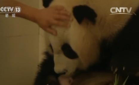 中國大熊貓保護(hù)研究中心大熊貓專家吳代福:它知道可能會(huì)取它的寶寶了,因?yàn)橐郧拔覀円踩∵^的,整個(gè)身體都把幼仔給蓋住了。