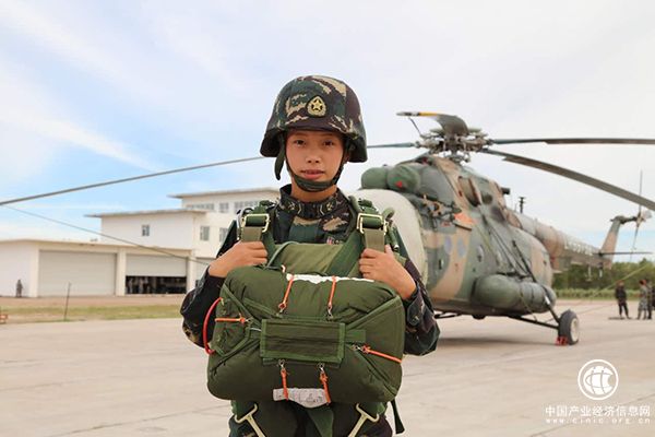 即將登機(jī)傘降的郭鑫,巨大沉重的傘降裝具和保護(hù)頭盔使這個(gè)姑娘的身形顯得更小了。