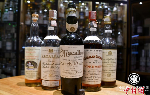 麥卡倫被譽(yù)為“威士忌中的勞斯萊斯”,是蘇格蘭高地(Highland)最成功的威士忌釀酒商之一。圖為維爾德豪斯酒店內(nèi)展出的1878年麥卡倫蘇格蘭威士忌。