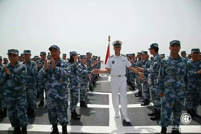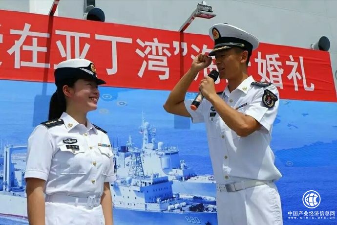 亞丁灣時(shí)間8月7日,新郎陳賢榜,正隨長(zhǎng)春艦執(zhí)行遠(yuǎn)航訪問(wèn)任務(wù),而他的新婚妻子蔣林芝正隨揚(yáng)州艦執(zhí)行第26批護(hù)航任務(wù)。兩人相戀5年多,終于在今年情人節(jié)結(jié)婚了,剛剛領(lǐng)完結(jié)婚證的他們,為了軍人的使命選擇別離,大半年甚至更久的任務(wù)讓來(lái)不及辦婚禮的倆人奔赴各自的遠(yuǎn)航。在兩批艦艇編隊(duì)錨泊休整間隙,兩批任務(wù)編隊(duì)領(lǐng)導(dǎo)一同決定,在亞丁灣為他們舉辦這個(gè)婚禮。亞丁灣上,軍婚莊嚴(yán),大海見(jiàn)證,軍艦為媒。上午10點(diǎn)18分,這場(chǎng)史上最“洋”氣的婚禮,在長(zhǎng)春艦這小小的甲板上舉行。沒(méi)有鮮花,深藍(lán)的大海為他們送出朵朵浪花;沒(méi)有婚紗,潔白的軍裝為他們裝點(diǎn)最美英姿;沒(méi)有鉆戒,他們把象征和平的橄欖枝,戴在了對(duì)方頭上;沒(méi)有酒席,但首長(zhǎng)和戰(zhàn)友們真摯的祝福感動(dòng)全場(chǎng)。“面對(duì)軍艦,以艦為媒,我宣誓……”,“面朝大海,以海為證,我宣誓……”,兩位新人的誓言響徹亞丁灣的海空,他們將之前各自任務(wù)航經(jīng)海域取好的海水,作為定情信物交換,寫著“愛(ài)琴海”和“亞丁灣”的玻璃瓶,在陽(yáng)光下莊重而耀眼。兩人愛(ài)情的見(jiàn)證,更是兩批任務(wù)官兵使命的象征。