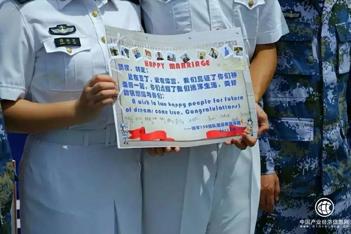 亞丁灣時(shí)間8月7日,新郎陳賢榜,正隨長(zhǎng)春艦執(zhí)行遠(yuǎn)航訪問(wèn)任務(wù),而他的新婚妻子蔣林芝正隨揚(yáng)州艦執(zhí)行第26批護(hù)航任務(wù)。兩人相戀5年多,終于在今年情人節(jié)結(jié)婚了,剛剛領(lǐng)完結(jié)婚證的他們,為了軍人的使命選擇別離,大半年甚至更久的任務(wù)讓來(lái)不及辦婚禮的倆人奔赴各自的遠(yuǎn)航。在兩批艦艇編隊(duì)錨泊休整間隙,兩批任務(wù)編隊(duì)領(lǐng)導(dǎo)一同決定,在亞丁灣為他們舉辦這個(gè)婚禮。亞丁灣上,軍婚莊嚴(yán),大海見(jiàn)證,軍艦為媒。上午10點(diǎn)18分,這場(chǎng)史上最“洋”氣的婚禮,在長(zhǎng)春艦這小小的甲板上舉行。沒(méi)有鮮花,深藍(lán)的大海為他們送出朵朵浪花;沒(méi)有婚紗,潔白的軍裝為他們裝點(diǎn)最美英姿;沒(méi)有鉆戒,他們把象征和平的橄欖枝,戴在了對(duì)方頭上;沒(méi)有酒席,但首長(zhǎng)和戰(zhàn)友們真摯的祝福感動(dòng)全場(chǎng)。“面對(duì)軍艦,以艦為媒,我宣誓……”,“面朝大海,以海為證,我宣誓……”,兩位新人的誓言響徹亞丁灣的???,他們將之前各自任務(wù)航經(jīng)海域取好的海水,作為定情信物交換,寫著“愛(ài)琴海”和“亞丁灣”的玻璃瓶,在陽(yáng)光下莊重而耀眼。兩人愛(ài)情的見(jiàn)證,更是兩批任務(wù)官兵使命的象征。