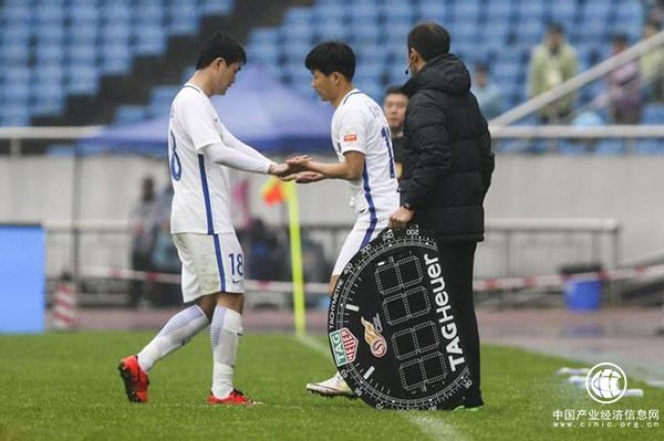 延邊富德與河北華夏幸福的比賽,第8分鐘金承大換下U23球員尹昌吉。