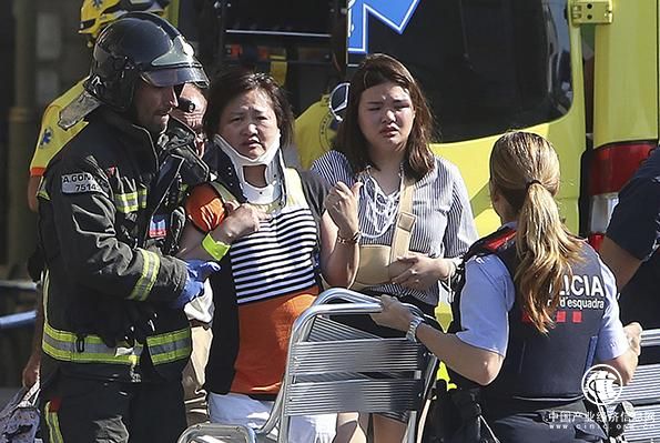 西班牙恐怖案事發(fā)現(xiàn)場(chǎng),救援人員幫助受傷的人離開。東方IC 圖