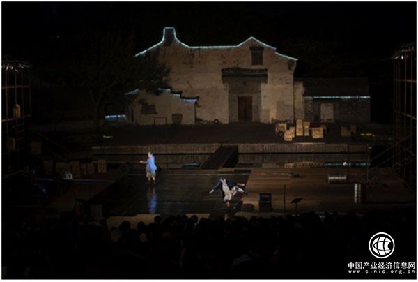 水劇場,位于西柵景區(qū)的西南角,舞臺架設在水池中,2300多個由原木鋪就的觀眾席呈扇形展開,逐層升高,蔥郁的樹木間隔在通道和四周。居高臨下,湖泊中近七千平方米新月形的主舞臺盡收眼底。舞臺背后連綿的明清老建筑群,馬頭墻、觀音兜,高聳的白蓮古塔和飛檐翹角的文昌閣勾勒出躍動的天際線。導演孟京輝是當年烏鎮(zhèn)戲劇節(jié)的藝術總監(jiān),他表示之前也沒有用過這樣的場地,演出效果是出乎意料的好。奇妙效果的背后是烏鎮(zhèn)對戲劇節(jié)的巨大投入,單單烏鎮(zhèn)大劇院的建設就投入近4.5億元。