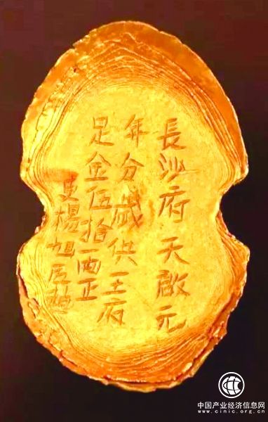 張獻(xiàn)忠“江口沉銀”盜掘案件中收繳的長(zhǎng)沙府天啟元年五十兩金錠。