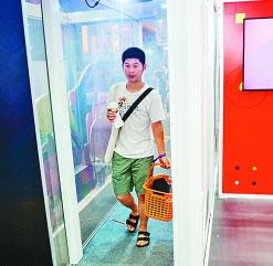 浙江杭州,一名顧客在由阿里開發(fā)的無人零售店內購買完商品后通過“支付門”完成結算。王偉偉攝 光明圖片/視覺中國
