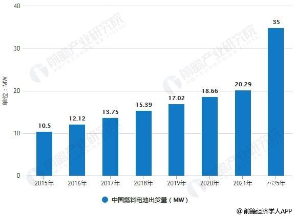 2015-2035年中國燃料電池出貨量統(tǒng)計情況及預(yù)測(數(shù)據(jù)來源:前瞻產(chǎn)業(yè)研究院整理)