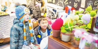 山東濱州80后、90后手工愛(ài)好者齊聚周末創(chuàng)意集市,他們制作的手工藝品引起小朋友極大興趣。光明圖片/視覺(jué)中國(guó)