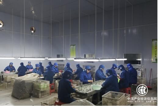 香菇扶貧就業(yè)車(chē)間里貧困群眾正在篩選香菇