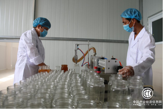 山底村扶貧就業(yè)車間里務(wù)工群眾灌裝加工生產(chǎn)的優(yōu)質(zhì)蜂蜜