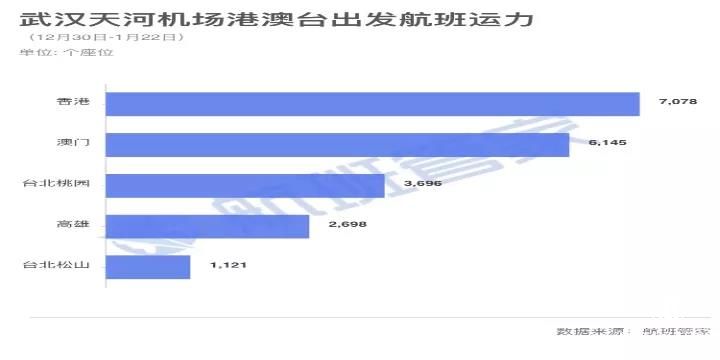 港澳臺(tái)方面,武漢出港航班量最大的是香港,其次是澳門和臺(tái)灣,不過這些城市接納的武漢人都不超過1萬人。
