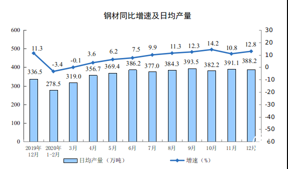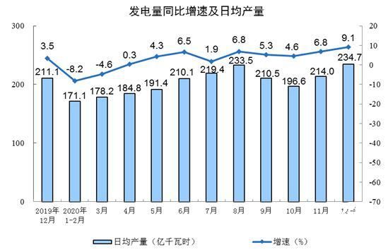 分產(chǎn)品看,12月份,612種產(chǎn)品中有417種產(chǎn)品同比增長。鋼材12034萬噸,同比增長12.8%;水泥21333萬噸,增長6.3%;十種有色金屬575萬噸,增長8.6%;乙烯208萬噸,增長11.3%;汽車280.4萬輛,增長6.5%,其中,新能源汽車23.8萬輛,增長55.6%;發(fā)電量7277億千瓦時,增長9.1%;原油加工量6000萬噸,增長2.1%。
