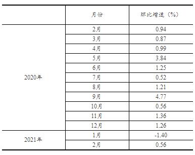根據(jù)季節(jié)調(diào)整模型自動(dòng)修正的結(jié)果,對(duì)2020年2月份以來的社會(huì)消費(fèi)品零售總額環(huán)比增速進(jìn)行修訂。修訂結(jié)果及2021年1、2月份環(huán)比數(shù)據(jù)如下: