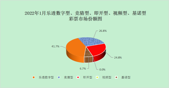 受高頻快開彩票游戲退市、即開型彩票派獎(jiǎng)促銷、基諾型彩票擴(kuò)大銷售范圍等因素影響,1月份主要彩票品種銷量同比波動(dòng)較大。樂透數(shù)字型彩票銷售128.65億元,同比減少90.70億元,下降41.4%;競猜型彩票銷售82.45億元,同比減少6.37億元,下降7.2%;即開型彩票銷售76.53億元,同比增加36.07億元,增長89.2%;視頻型彩票銷售0.0005億元,同比減少0.0014億元,下降72.6%;基諾型彩票銷售20.59億元,同比增加11.64億元,增長130.1%。1月份,樂透數(shù)字型、競猜型、即開型、基諾型彩票銷售量分別占彩票銷售總量的41.7%、26.8%、24.8%、6.7%,視頻型彩票銷售占比不到0.1%。