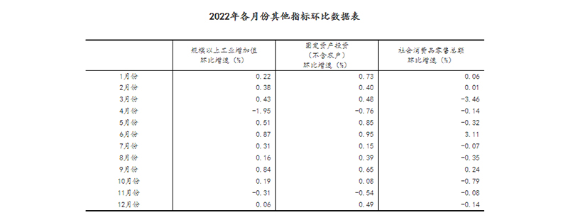 ?。?)根據(jù)季節(jié)調(diào)整模型自動(dòng)修正結(jié)果,對(duì)近一年來(lái)各期國(guó)內(nèi)生產(chǎn)總值、規(guī)模以上工業(yè)增加值、固定資產(chǎn)投資(不含農(nóng)戶)、社會(huì)消費(fèi)品零售總額環(huán)比增速進(jìn)行修訂。修訂結(jié)果及2022年四季度GDP環(huán)比數(shù)據(jù)、2022年12月份其他指標(biāo)環(huán)比數(shù)據(jù)如下: